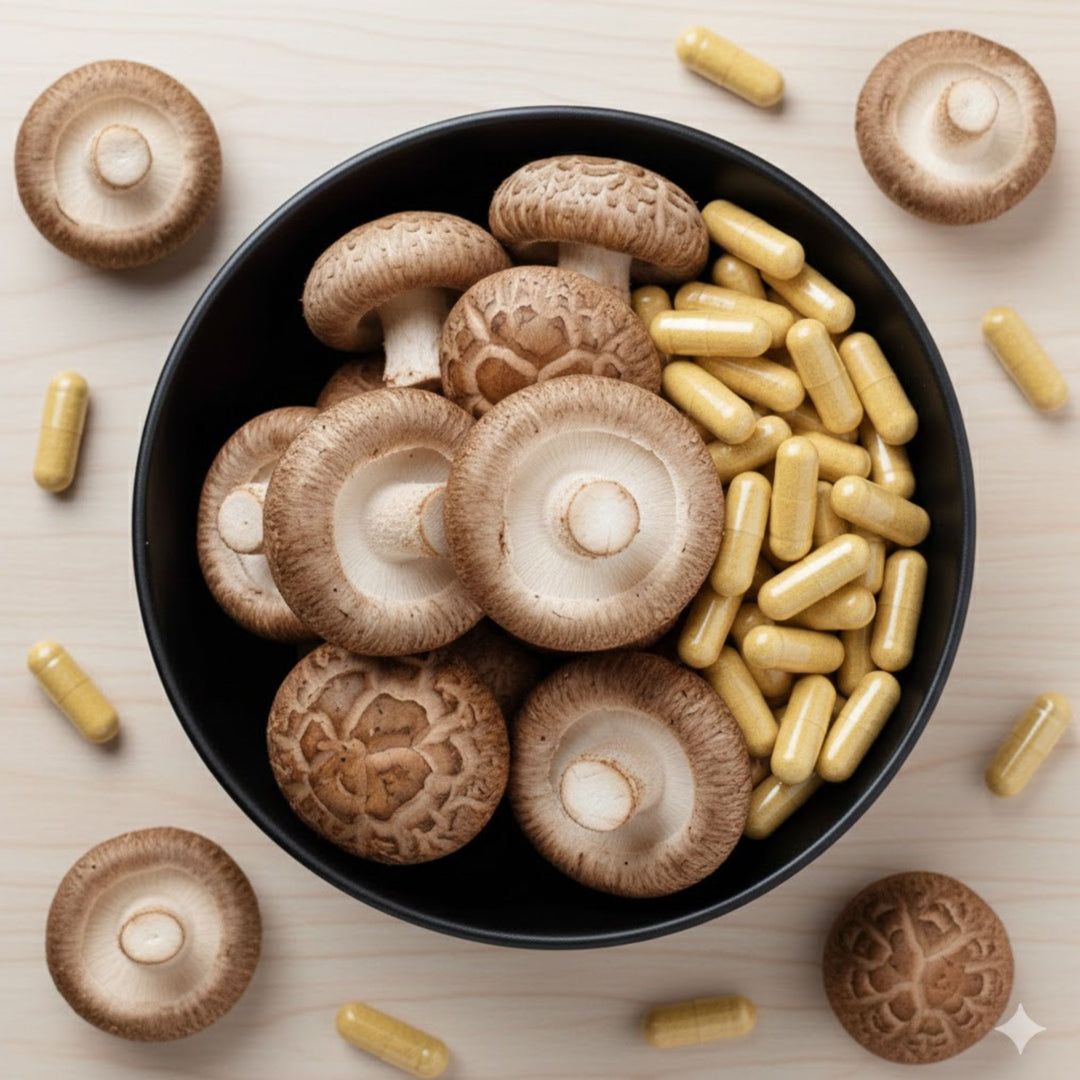 Der Shiitake- Pilz wird in traditionellen Esskulturen seit Jahrhunderten geschätzt und ist für sein reichhaltiges Nährstoffprofil bekannt. Für unsere Kapseln wird Shiitake schonend zu einem konzentrierten Extrakt verarbeitet, sodass Sie die Kraft dieses Pilzes ganz einfach in Ihren Alltag integrieren können.
