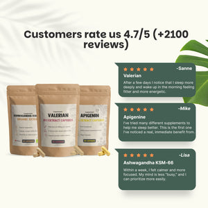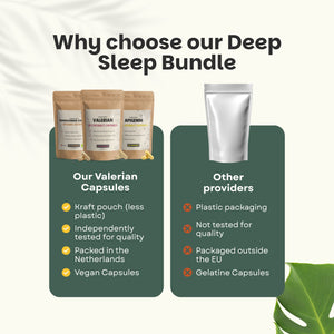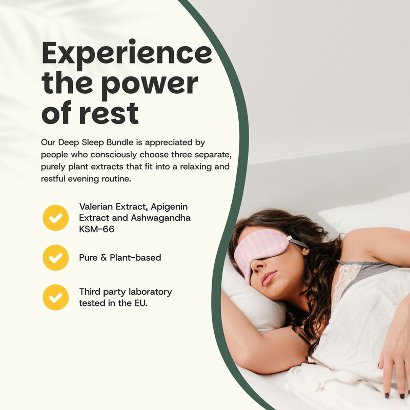 The Deep Sleep Bundle is a natural sleep support combination of three capsules: Apigenin , Valerian Root , and Ashwagandha KSM-66® (organic) .